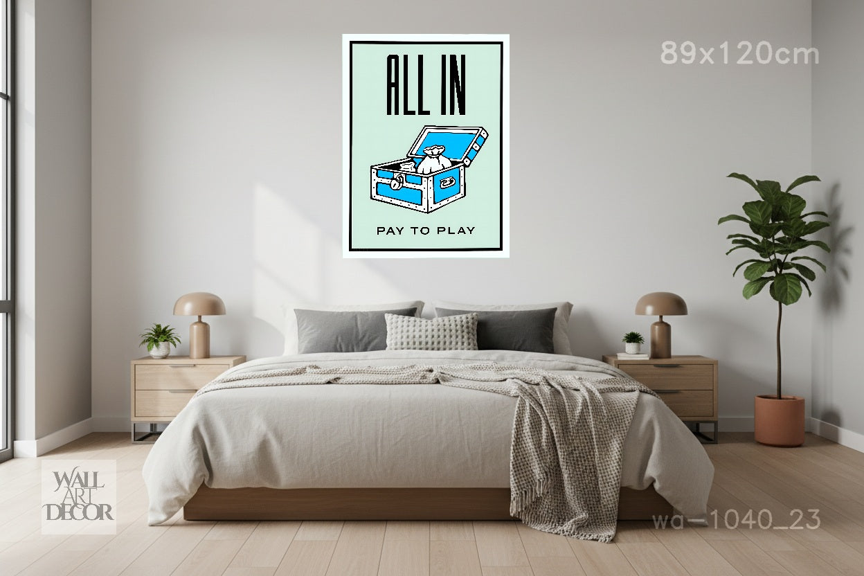 الكل في: فن تحفيزي للعبة مونوبولي "ادفع لتلعب" - لوحة جدارية حديثة بدون إطار
