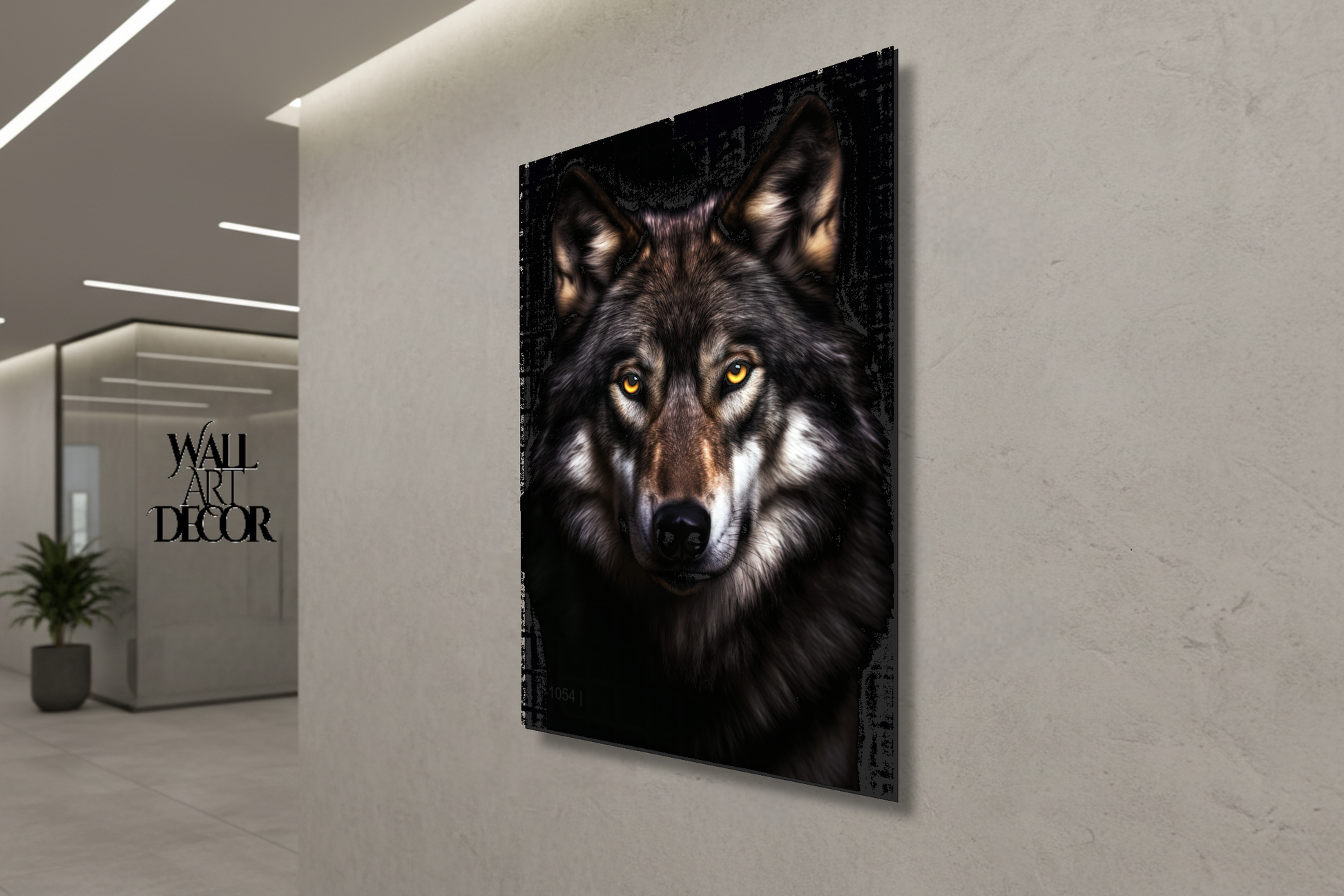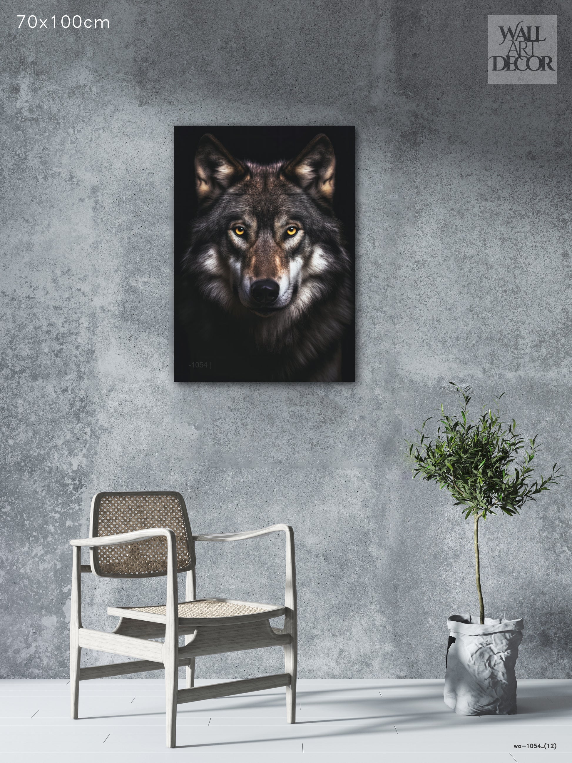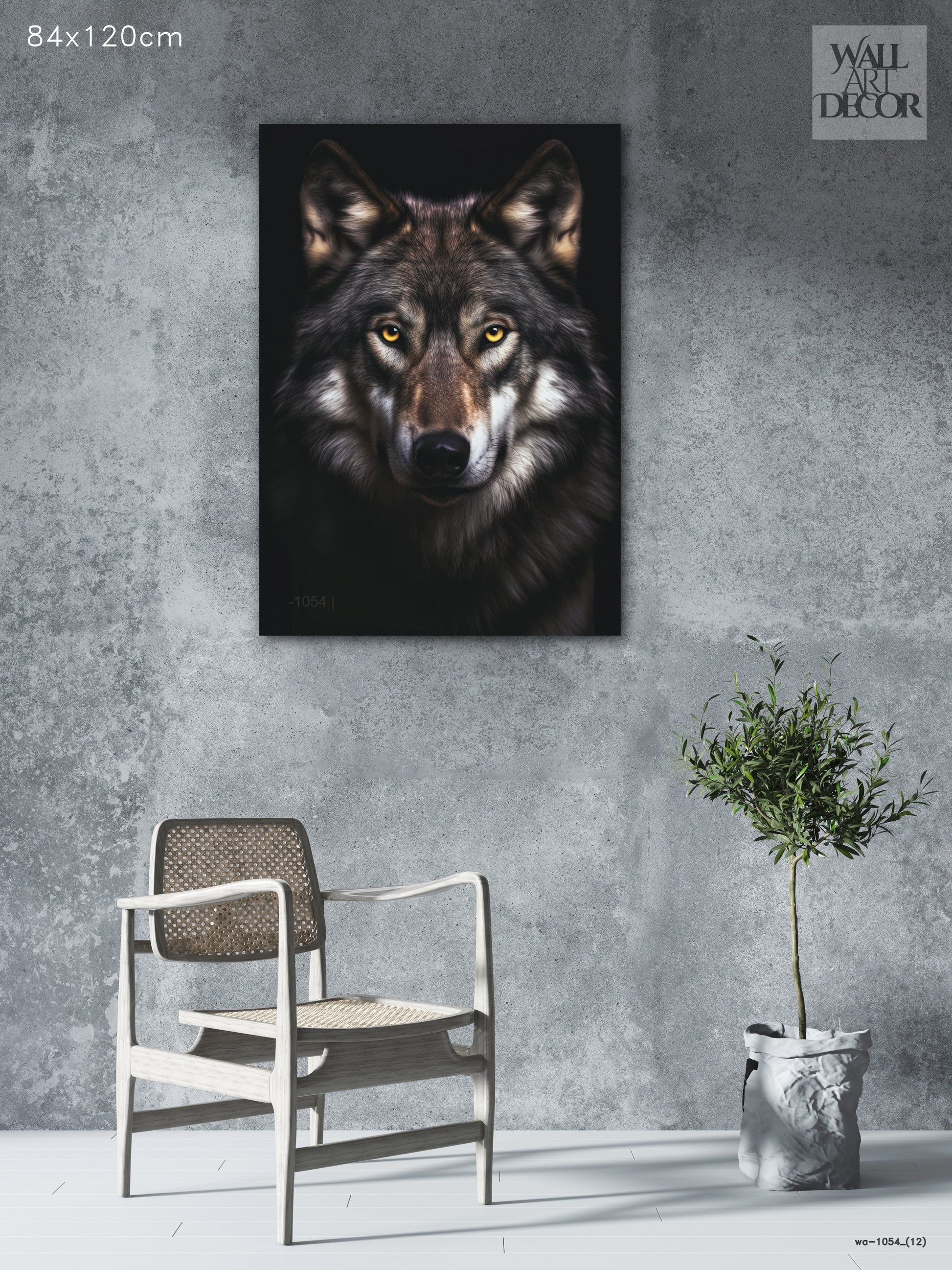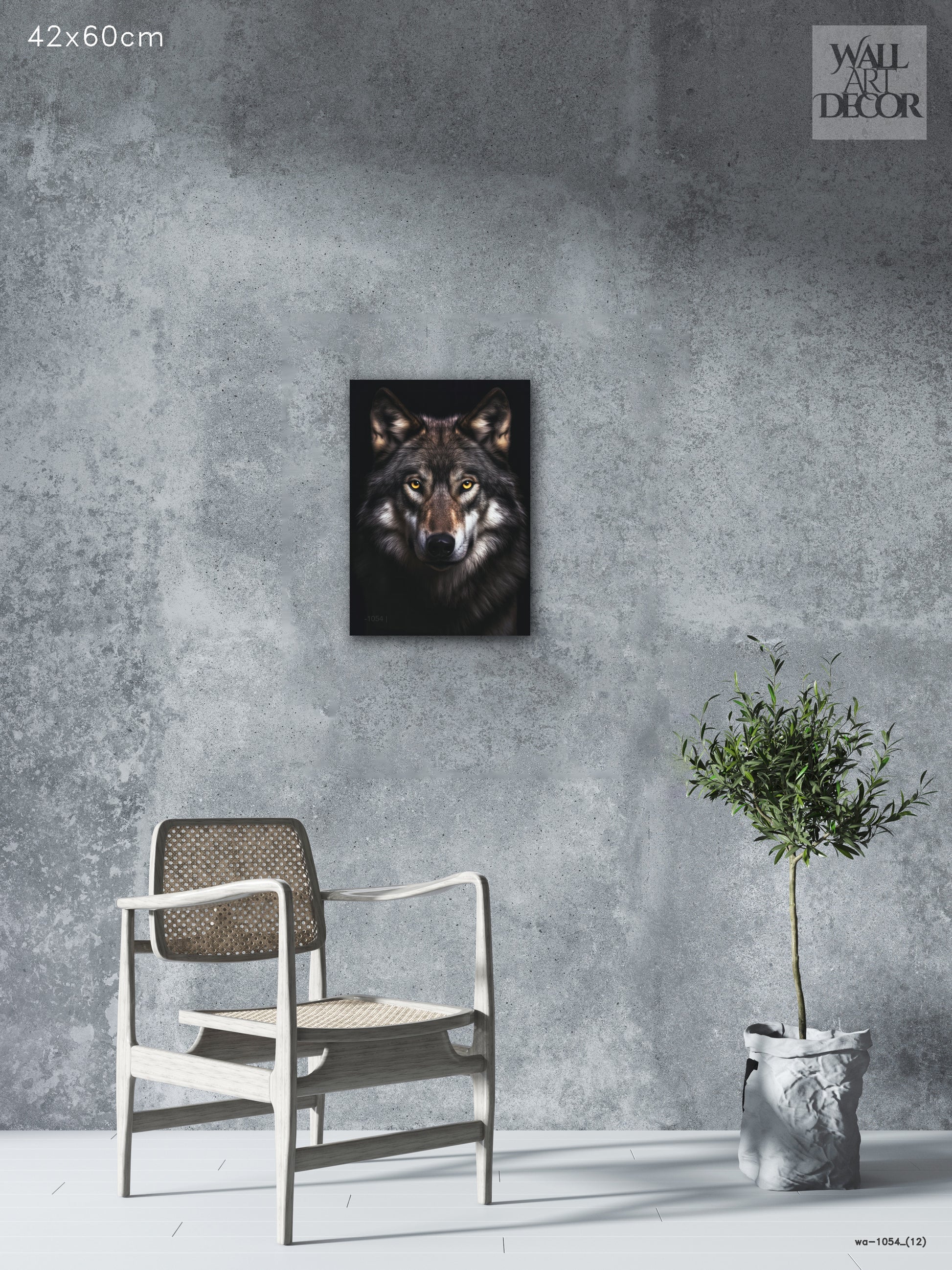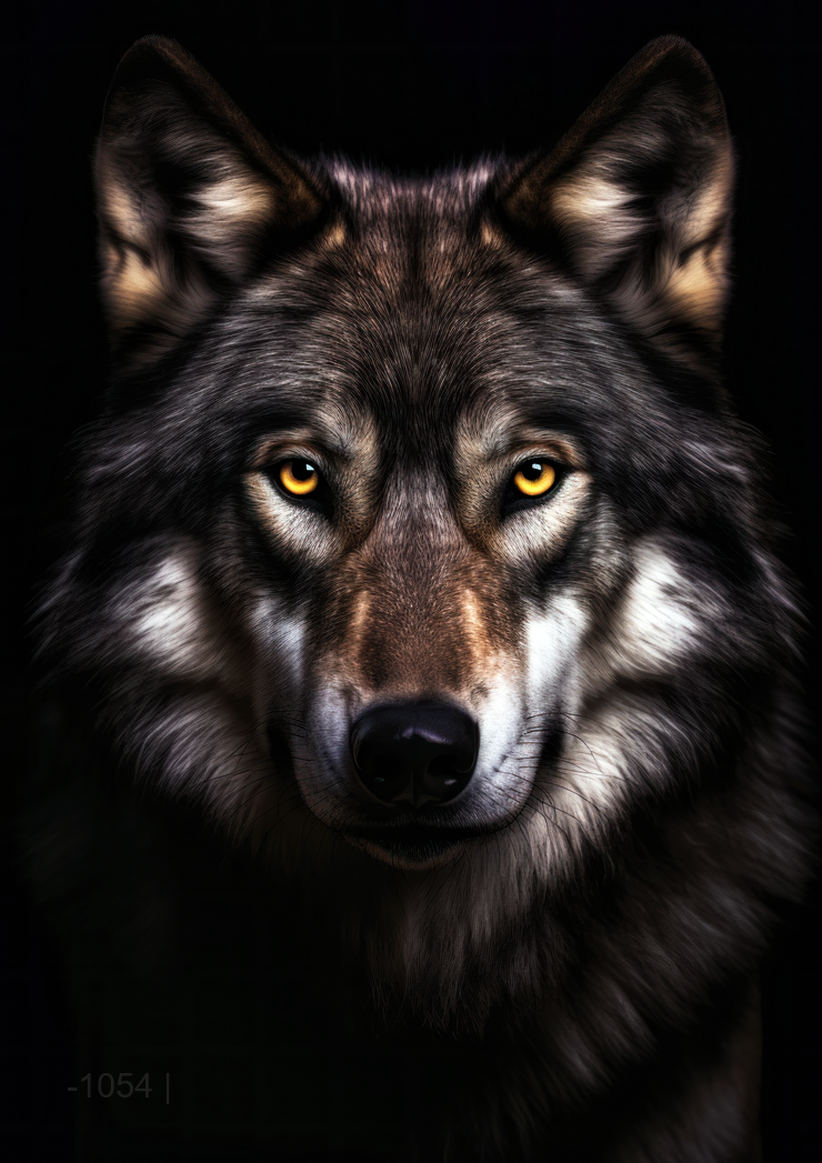 روح ألفا: صورة ذئب رمادي قوي - لوحة جدارية حديثة بدون إطار