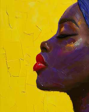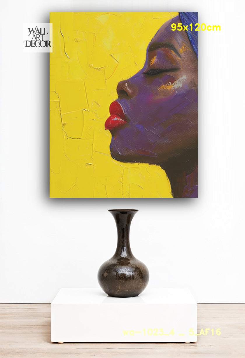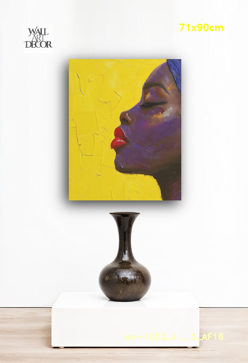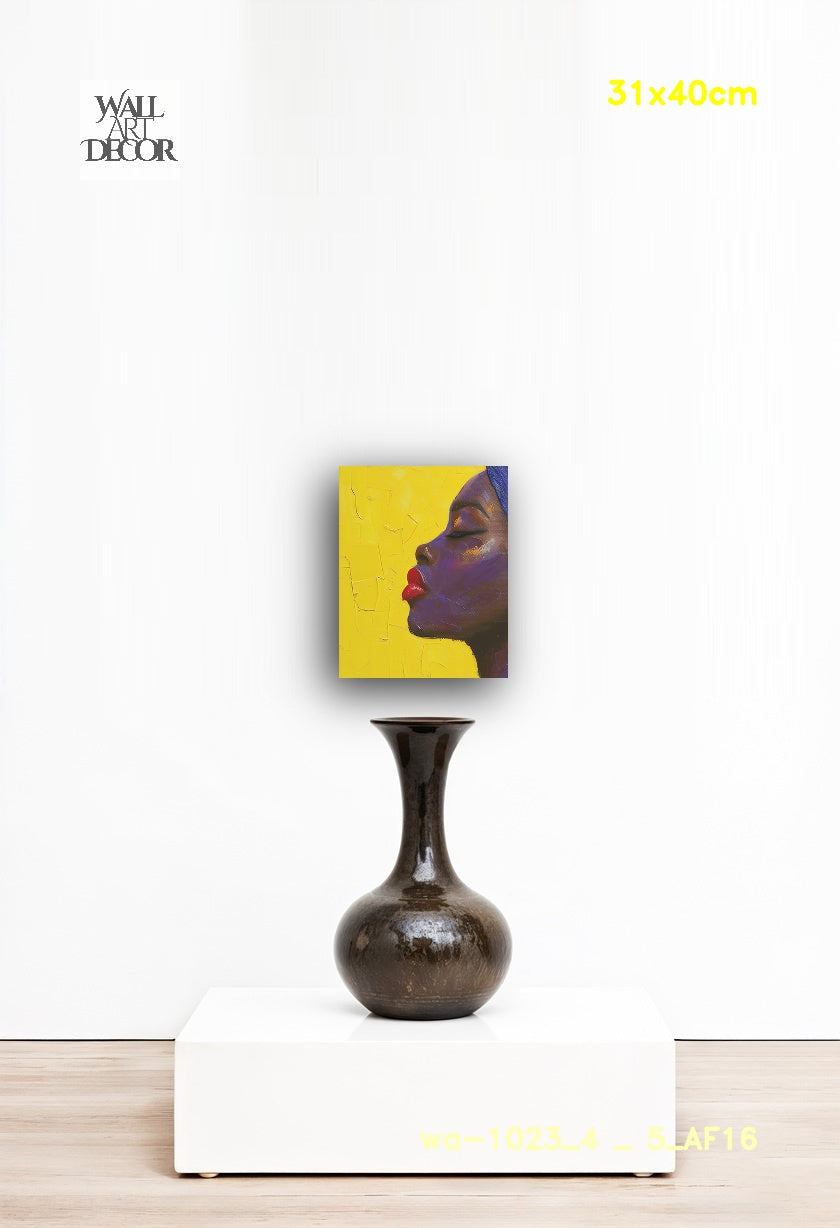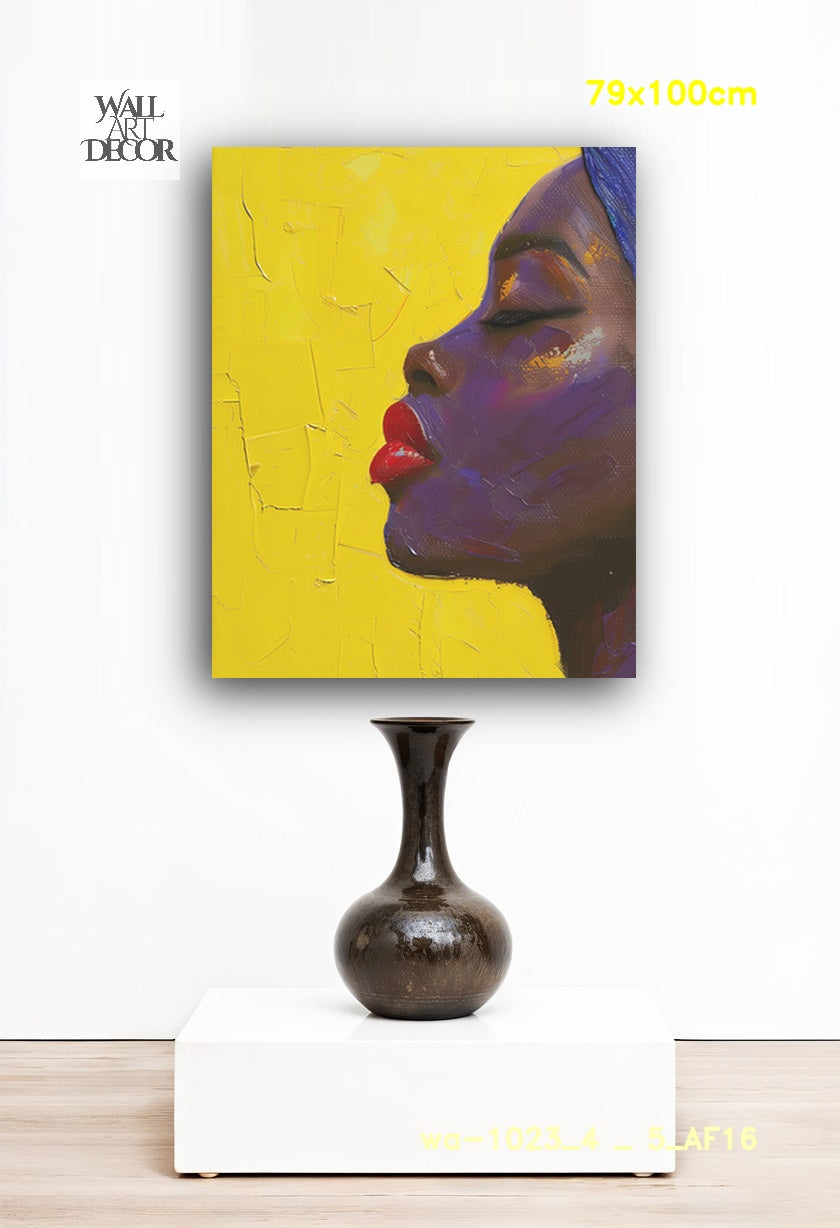 أضف لمسة من الرقيّ النابض بالحياة إلى منزلك مع لوحة "صفاء الجمشت". تُجسّد هذه اللوحة المعاصرة الرائعة لحظة من السكينة المطلقة، حيث تُظهر جانب امرأة مغمضة العينين في تأمل هادئ. تتميز اللوحة بأسلوب جريء يعتمد على تقنية الرسم بالمعجون، مع ضربات فرشاة سميكة ومعبرة بألوان البنفسجي الداكن والبرقوقي على البشرة، تتناقض بشكل رائع مع شفاه حمراء نارية. وعلى خلفية صفراء زاهية ذات ملمس مميز، تُشعّ هذه اللوحة طاقة وهدوءًا متوازنين.