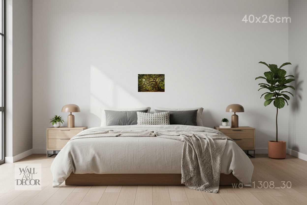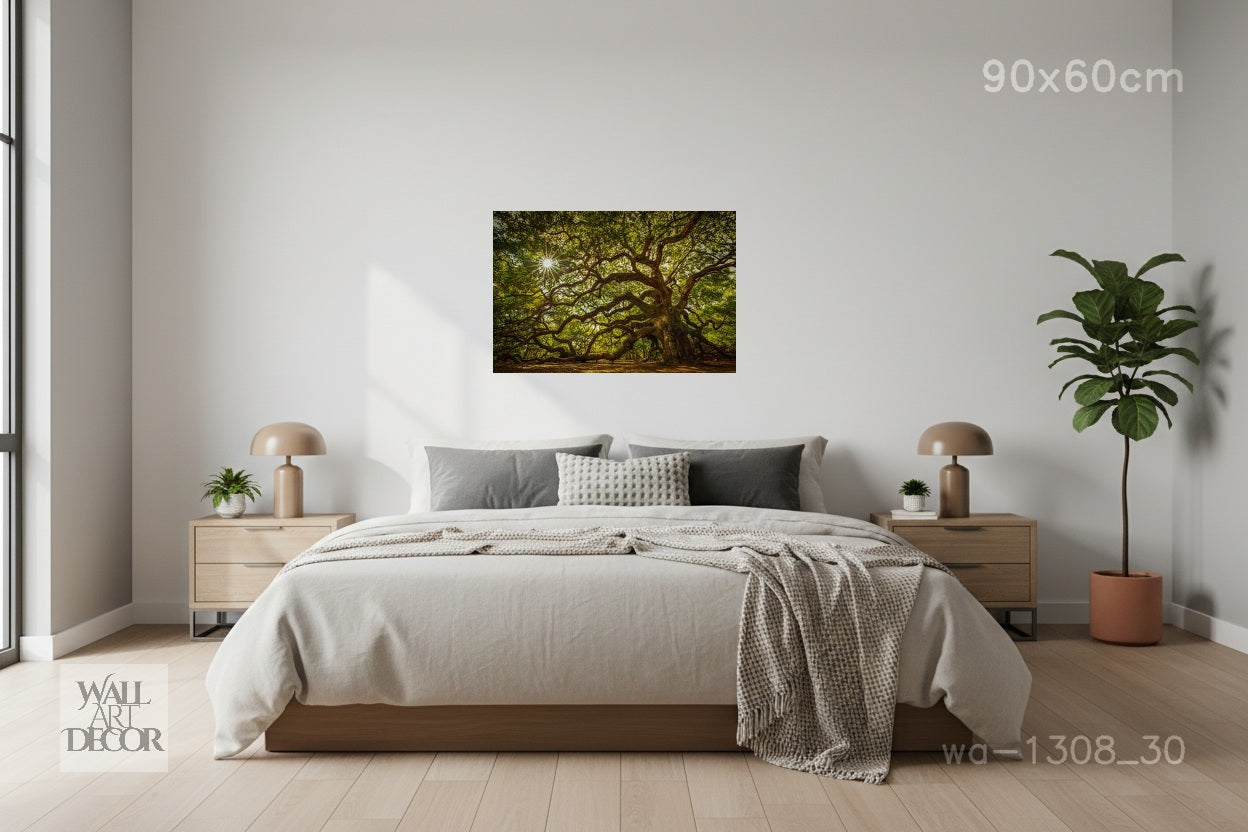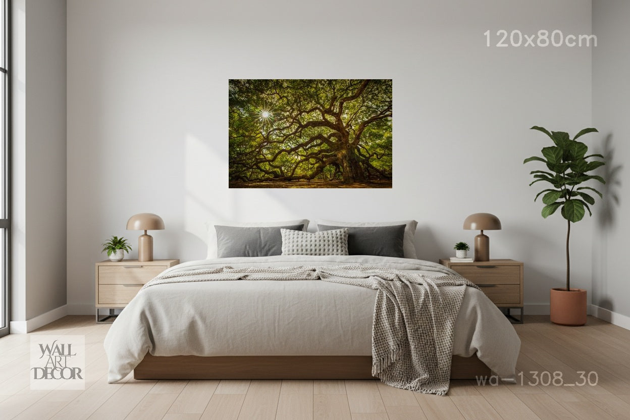 تماشياً مع فلسفتنا التصميمية في wallartdecor.ae ، تتميز هذه اللوحة بتشطيب بدون إطار يغطي كامل المساحة. فهي تلتصق تماماً بالحائط لتمنحه مظهراً أنيقاً وكأنه "عائم"، مما يسمح لحجم الشجرة العريقة المهيب بالسيطرة على مساحتك دون تشتيت الانتباه البصري الذي يسببه الإطار التقليدي.