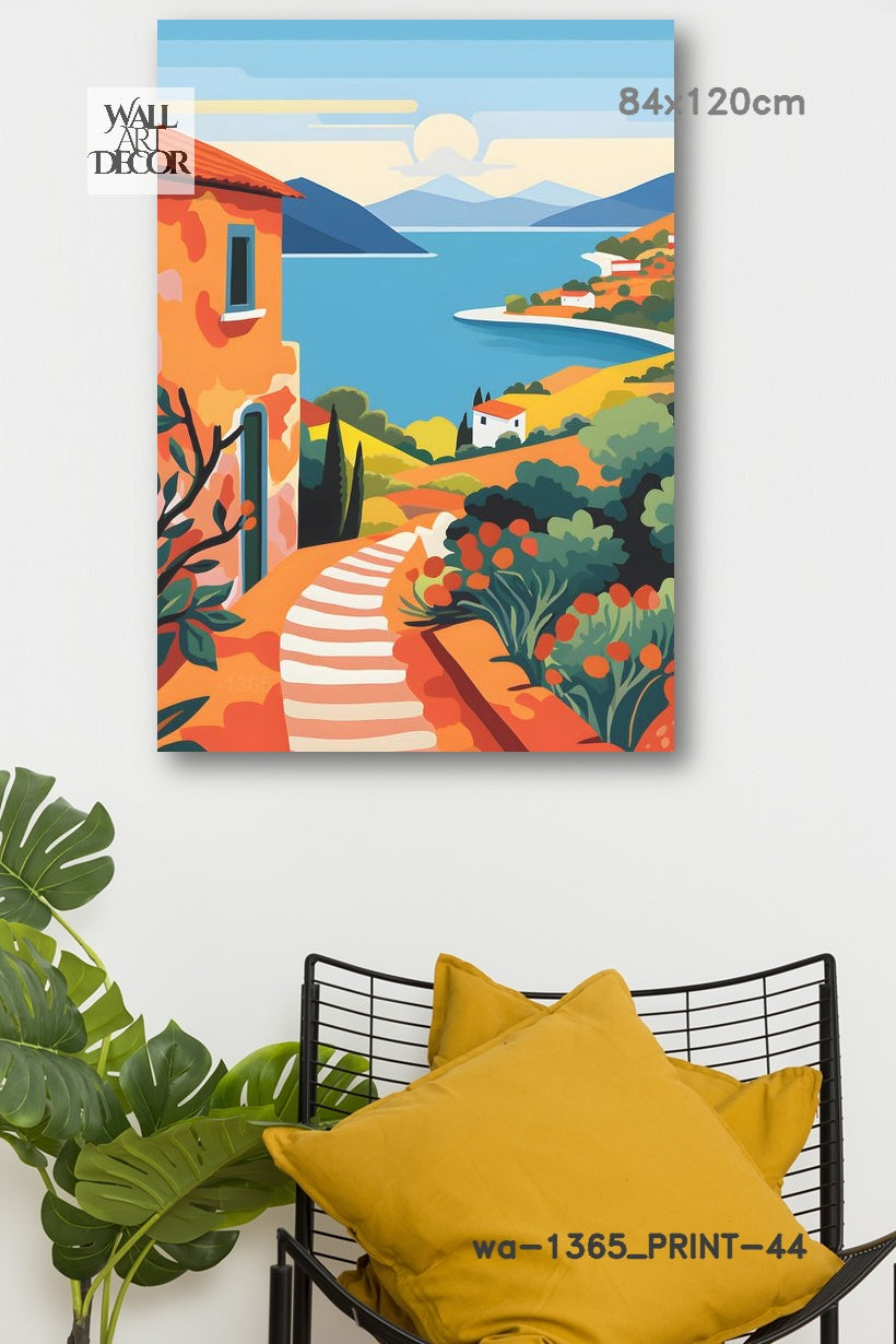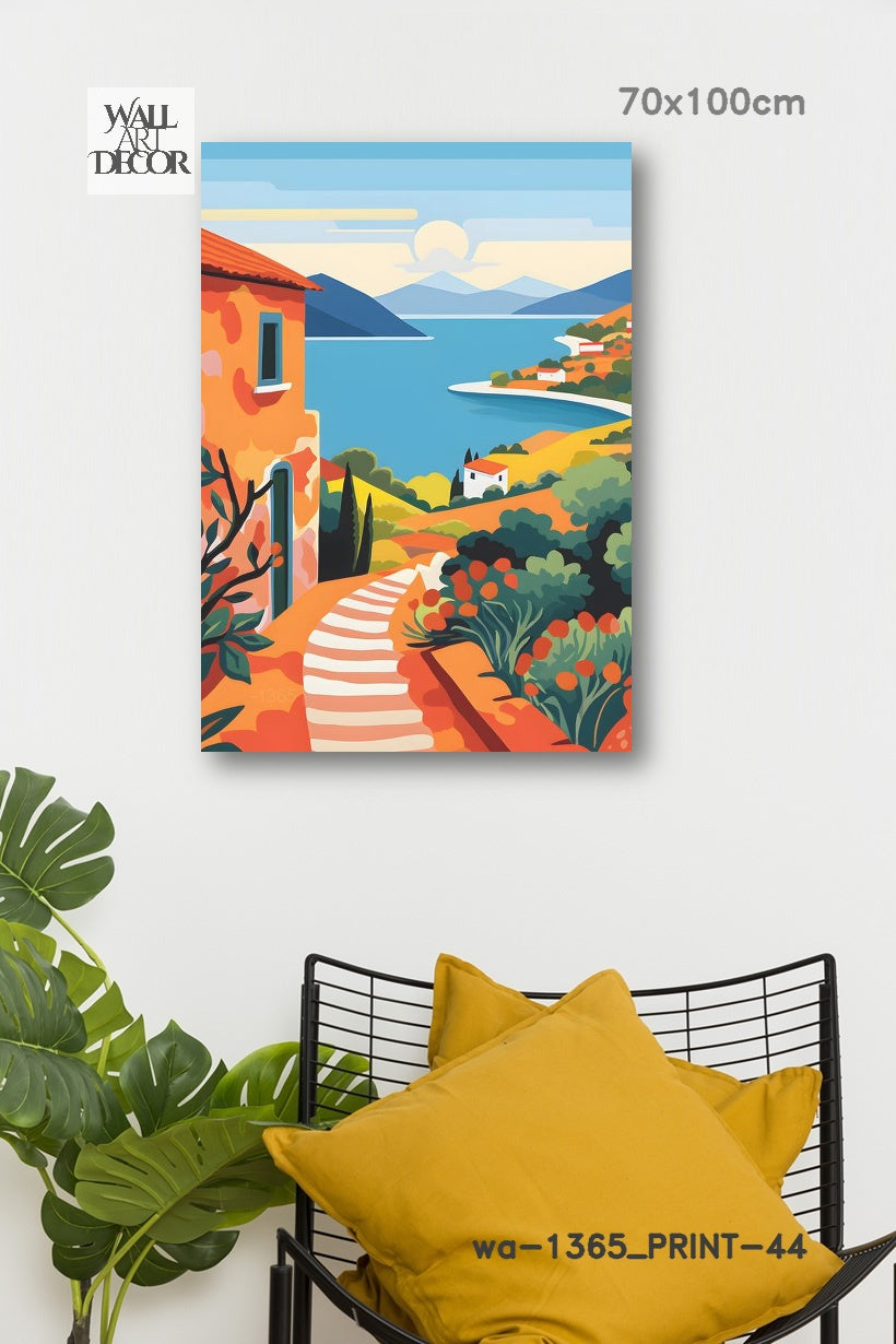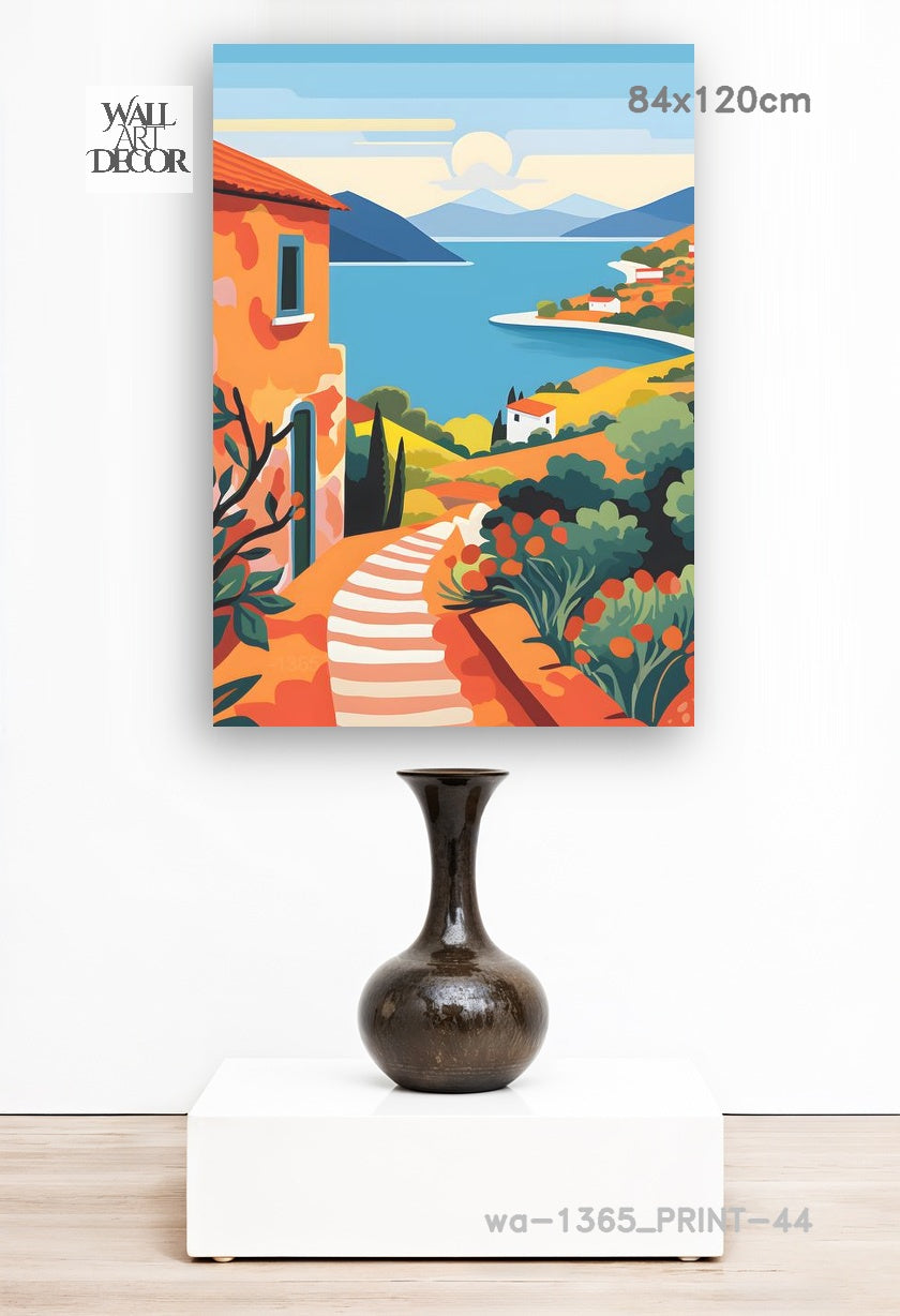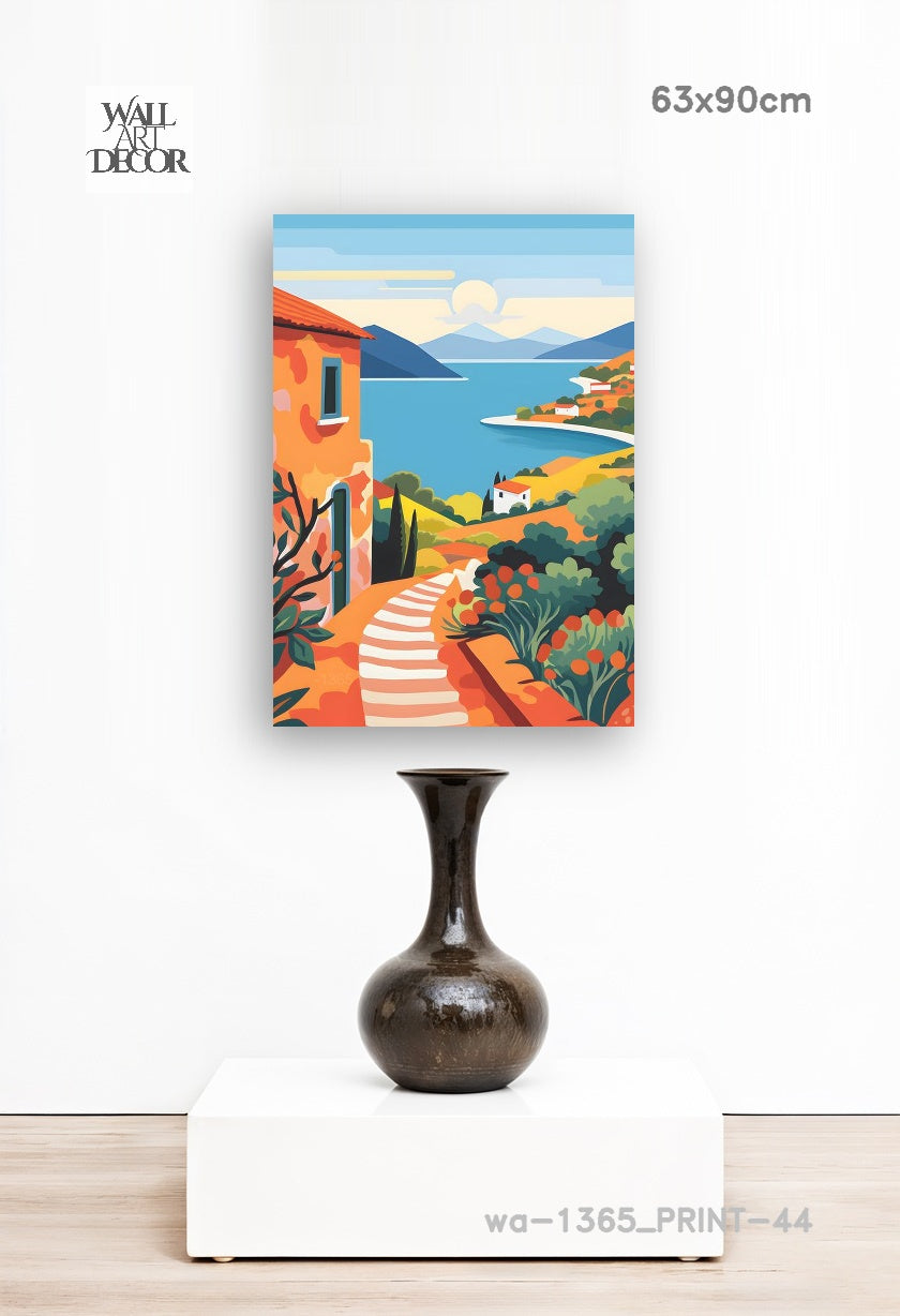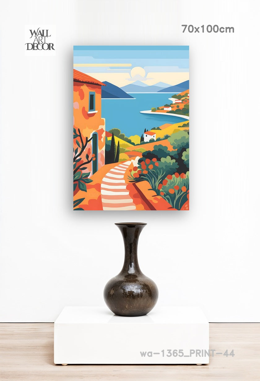 ملاذ أزور: درب البحر الأبيض المتوسط ​​المشمس - لوحة جدارية عصرية بدون إطار