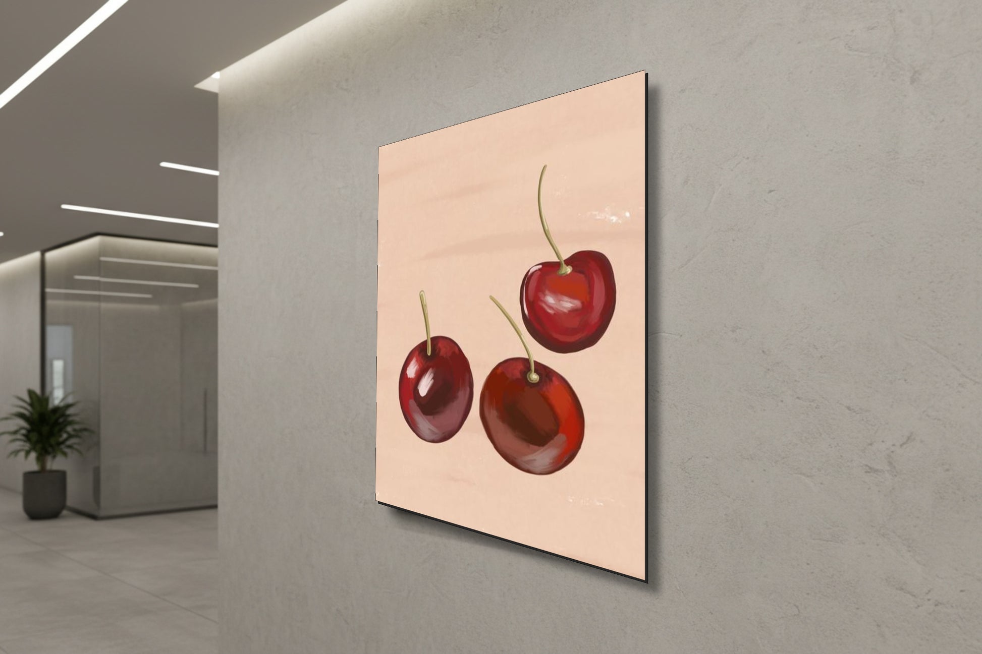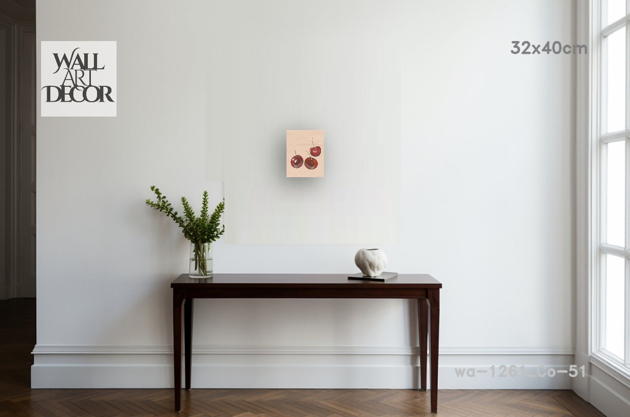 أضف لمسة من الدفء الطبيعي والذوق الفني إلى منزلك مع لوحة "التناغم النباتي". تُبرز هذه اللوحة المائية الرقيقة ثلاث حبات من الكرز الأحمر الناضج، مرسومة بدرجات لونية قرمزية غنية وعميقة مع لمسات ناعمة تُضفي عليها طابعًا فنيًا. على خلفية كريمية بسيطة ذات ملمس مميز، تُجسد اللوحة جمال الطبيعة الطبيعي بأسلوب راقٍ يُوحي بالرسم اليدوي، مما يُضفي على أي غرفة شعورًا بالهدوء والانتعاش.