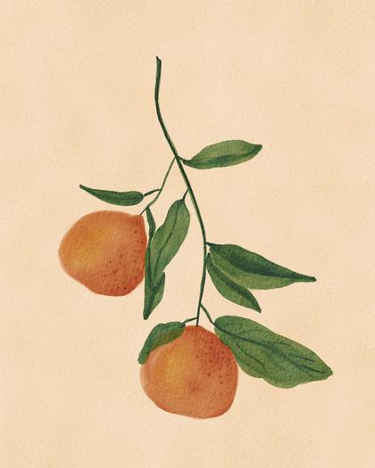 هدوء نباتي: غصن حمضيات مرسوم بالألوان المائية - لوحة جدارية عصرية بدون إطار