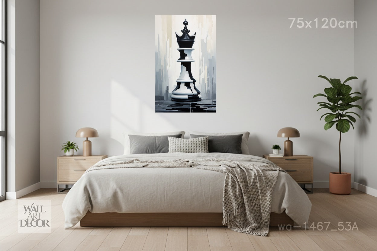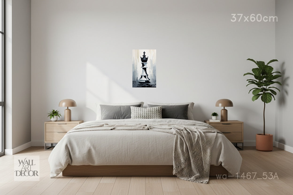 اجذب الأنظار في أي غرفة مع لوحة "كش ملك: الملكة الكبرى". تتميز هذه القطعة الفنية الرقمية المعاصرة الرائعة بملكة شطرنج مهيبة، مرسومة بنسيج رخامي أنيق بالأبيض والأسود، يوحي بجمال الحجر الكلاسيكي وحركة السوائل العصرية. تقف الملكة شامخة على خلفية بسيطة عالية التباين من درجات الرمادي المتساقطة، رمزًا لمرونة الاستراتيجية وقوة الحسم التي تتمتع بها أكثر قطع الشطرنج تنوعًا.