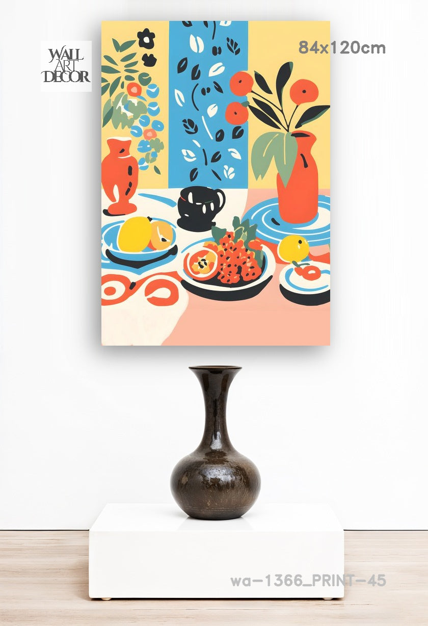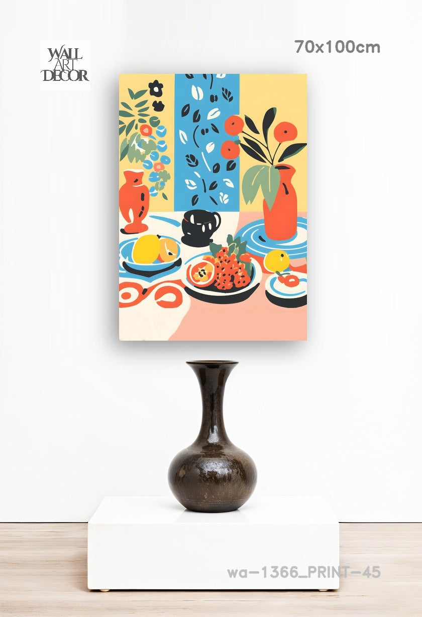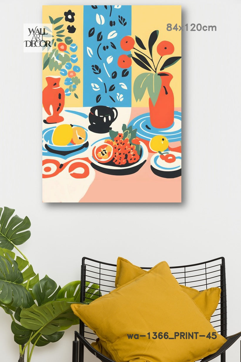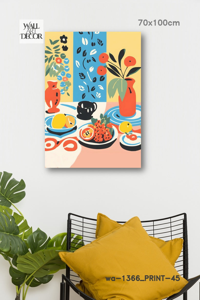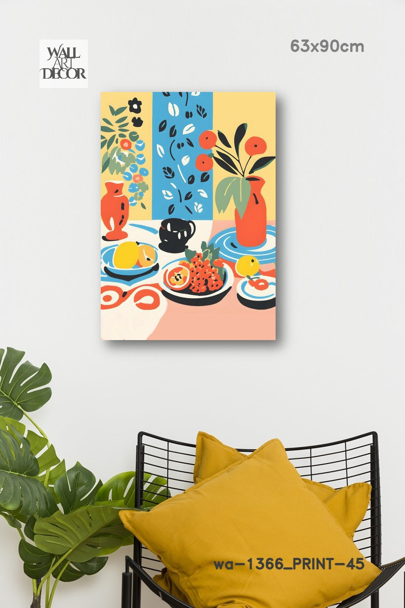 أضف لمسة من دفء الريفييرا إلى مائدتك مع لوحة "الحمضيات والسكينة". تُجسّد هذه اللوحة النابضة بالحياة، المستوحاة من البحر الأبيض المتوسط، لوحةً ساحرةً على طاولة، تضمّ ليمونًا ناضجًا تحت أشعة الشمس، وشرائح برتقال، ومزهريات من الطين الريفي تفيض بالزهور النضرة. رُسمت اللوحة بأسلوب جريء وتوضيحي يُذكّر بالحداثة الأوروبية في منتصف القرن العشرين، مستخدمةً ألوانًا مبهجةً من الأزرق السماوي، والأصفر المشمس، والوردي المرجاني. تُضفي النقوش المرحة على ورق الحائط ومفارش الطاولة لمسةً من السحر والجمال، مُستحضرةً أجواءً صيفيةً مفعمةً بالحيوية، تُذكّر بوجبة فطور وغداء صيفية على شاطئ البحر.