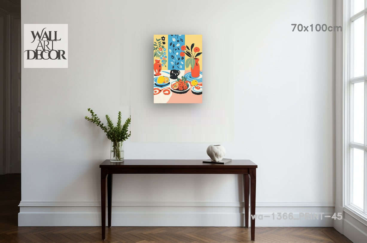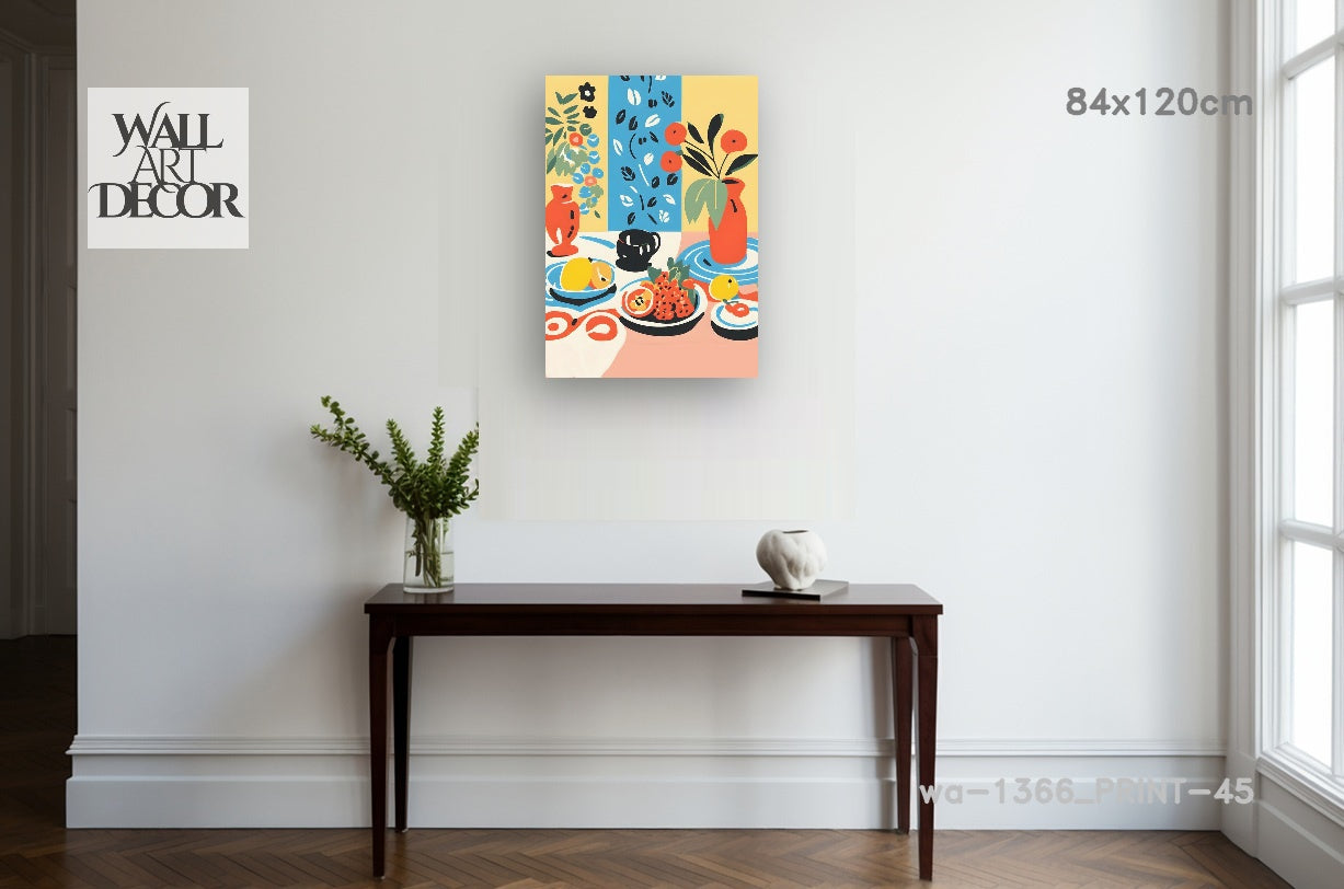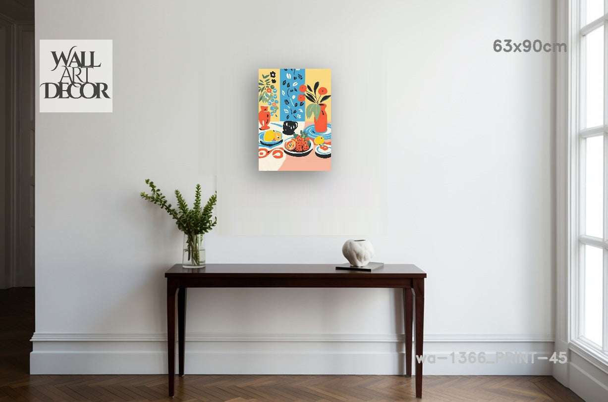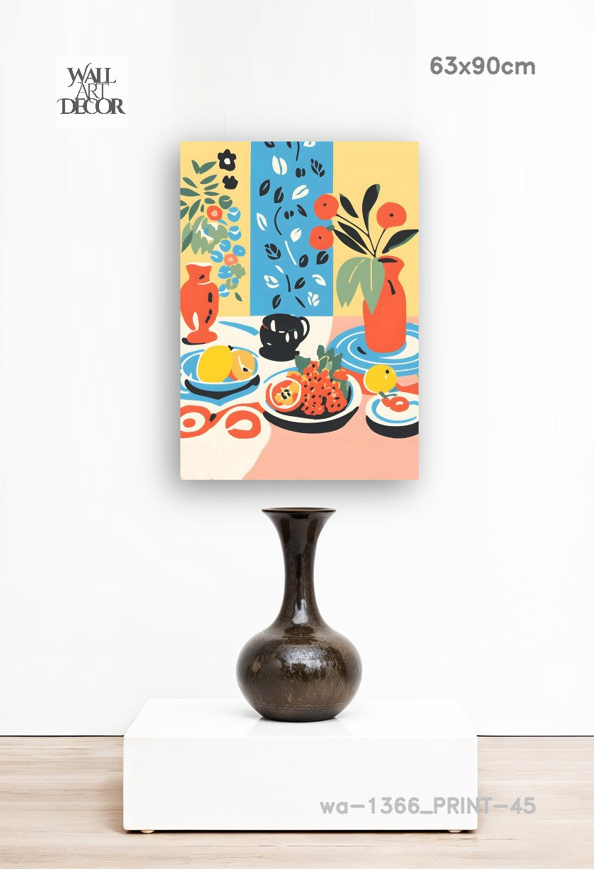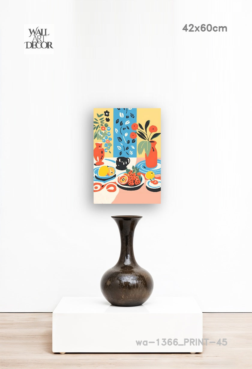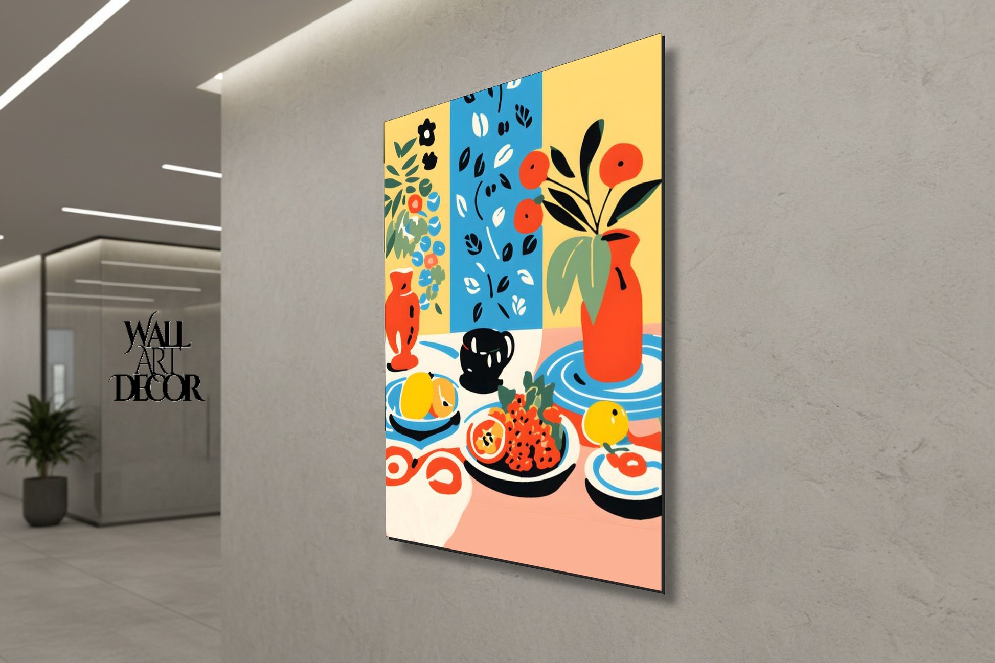 أضف لمسة من دفء الريفييرا إلى مائدتك مع لوحة "الحمضيات والسكينة". تُجسّد هذه اللوحة النابضة بالحياة، المستوحاة من البحر الأبيض المتوسط، لوحةً ساحرةً على طاولة، تضمّ ليمونًا ناضجًا تحت أشعة الشمس، وشرائح برتقال، ومزهريات من الطين الريفي تفيض بالزهور النضرة. رُسمت اللوحة بأسلوب جريء وتوضيحي يُذكّر بالحداثة الأوروبية في منتصف القرن العشرين، مستخدمةً ألوانًا مبهجةً من الأزرق السماوي، والأصفر المشمس، والوردي المرجاني. تُضفي النقوش المرحة على ورق الحائط ومفارش الطاولة لمسةً من السحر والجمال، مُستحضرةً أجواءً صيفيةً مفعمةً بالحيوية، تُذكّر بوجبة فطور وغداء صيفية على شاطئ البحر.