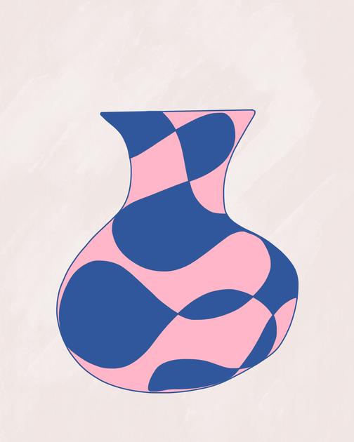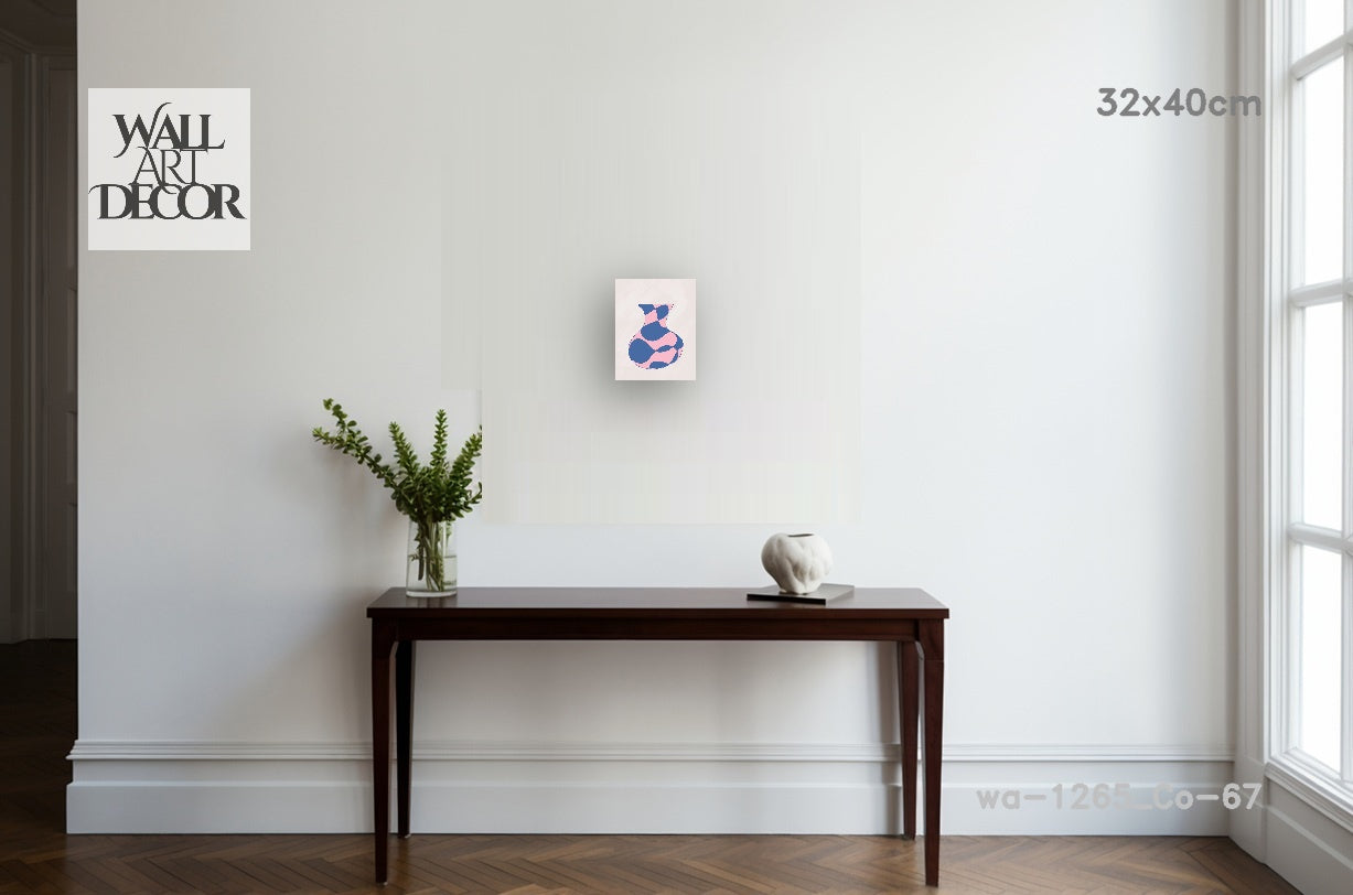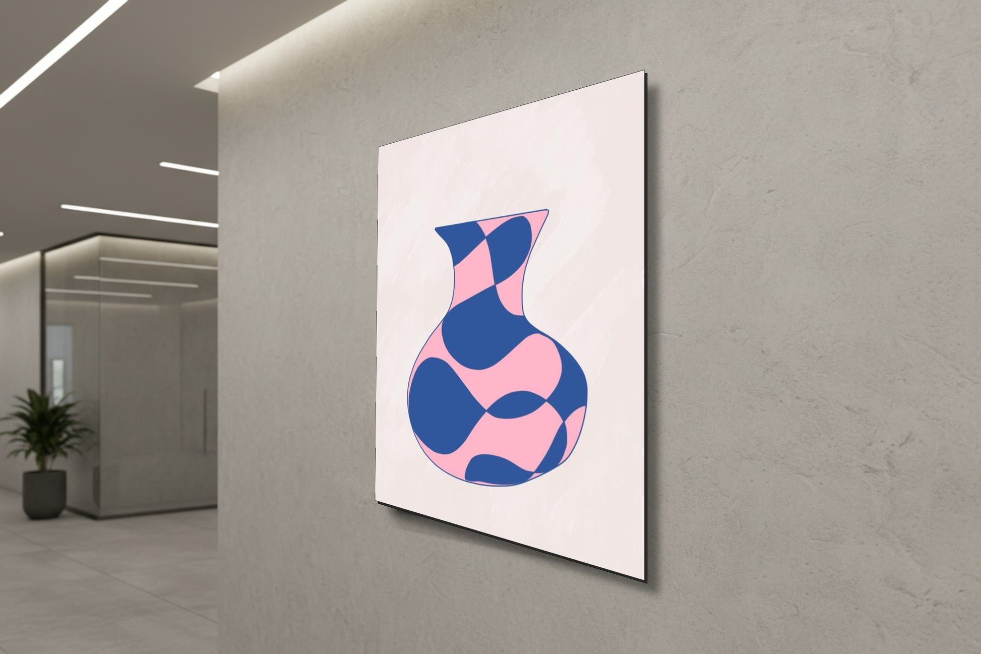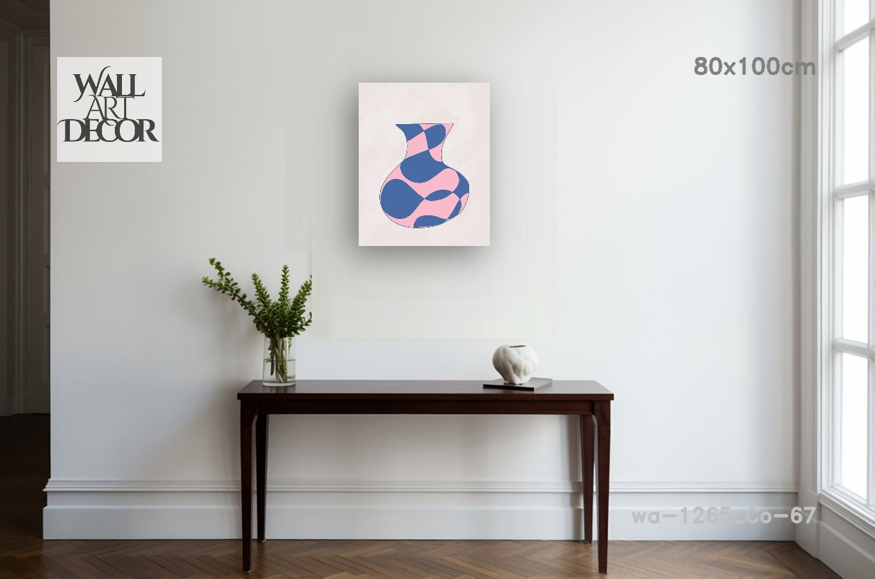 فن جداري معاصر يوناني: مزهرية تجريدية باللونين الوردي والأزرق - فن جداري حديث بدون إطار