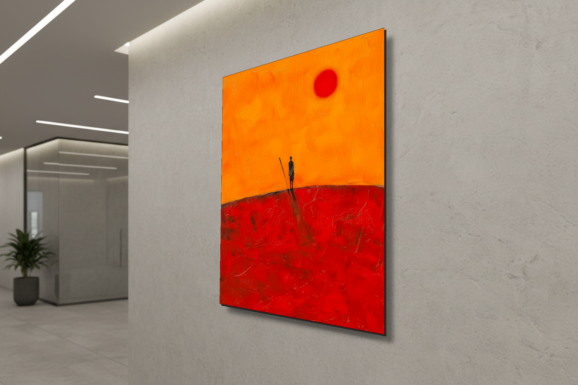 الأفق القرمزي: الحارس الصامت – لوحة جدارية عصرية بدون إطار