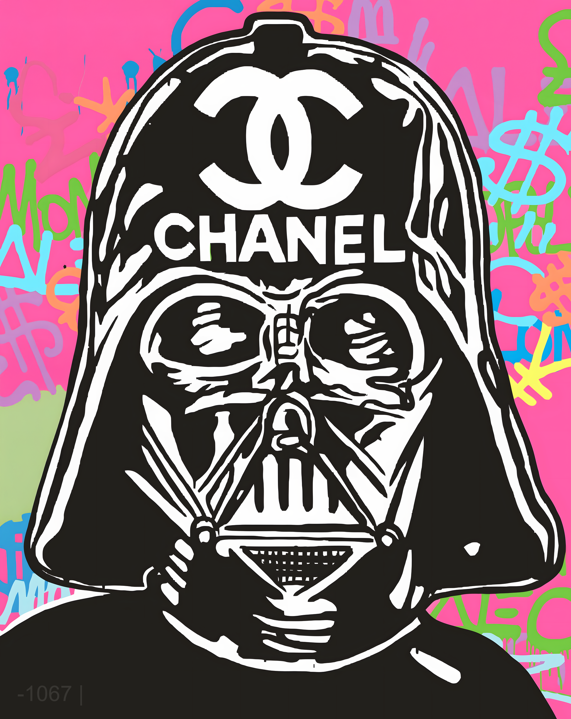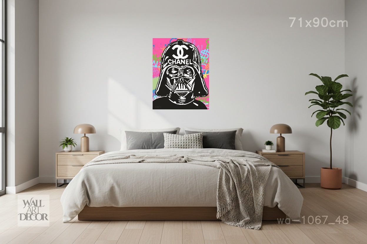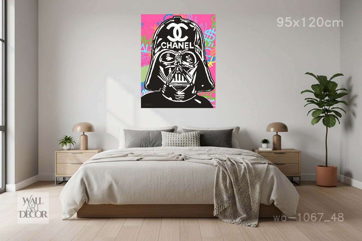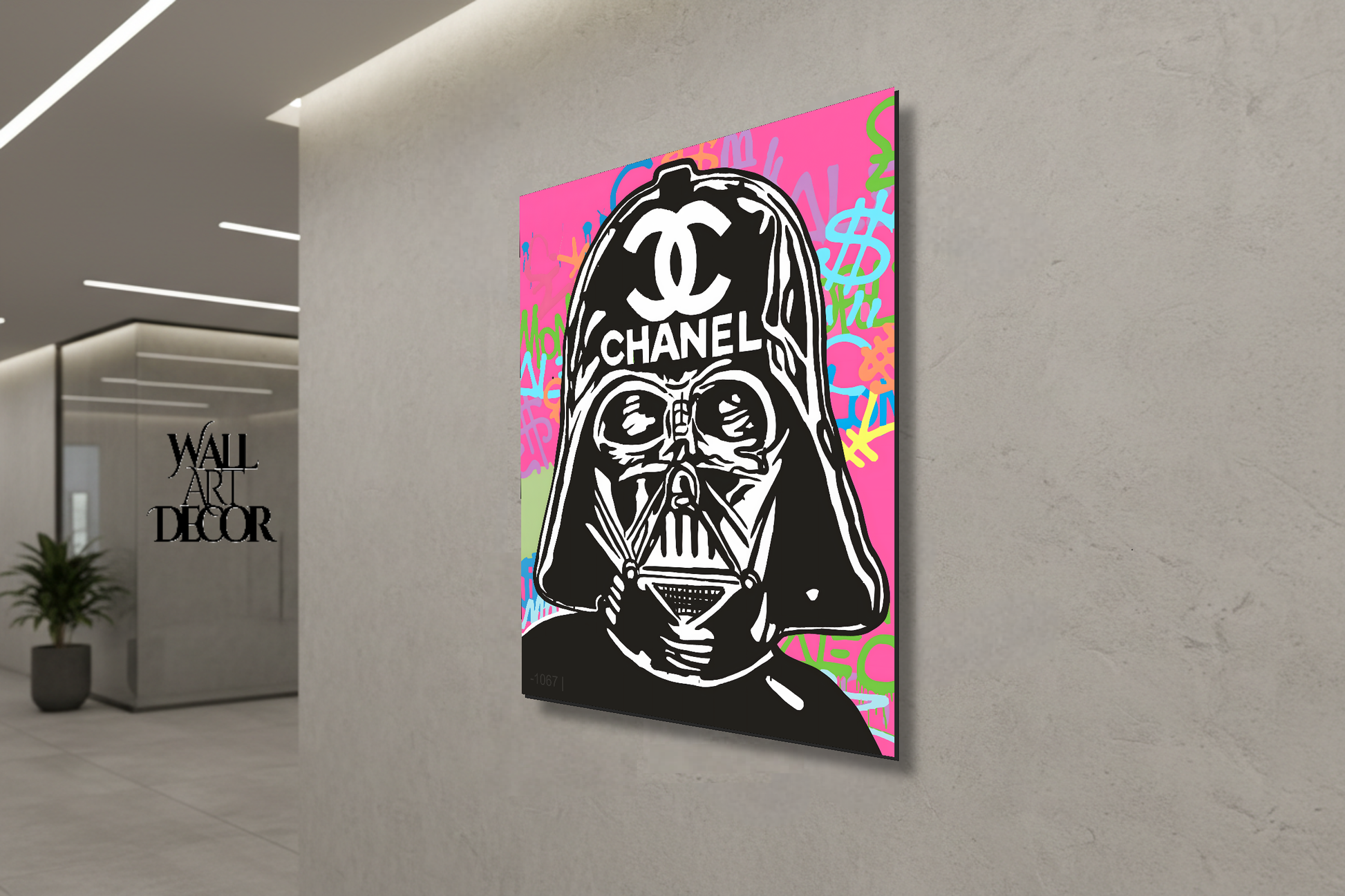 أناقة الجانب المظلم: دارث فيدر شانيل بوب آرت – لوحة جدارية حديثة بدون إطار