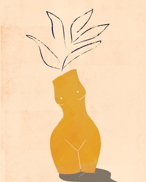 احتفي بجمال الأنوثة مع لوحة "الإلهة الذهبية". تتميز هذه القطعة الفنية التجريدية البسيطة بإناء ذهبي بلون الخردل منحوت على هيئة أنثوية رشيقة، ممزوجًا بين التقدير الكلاسيكي للشكل البشري والتصميم المعاصر. تنبثق من الإناء أوراق رقيقة مرسومة بخطوط زرقاء داكنة تتجه للأعلى، لتخلق توازنًا متناغمًا بين النمو الطبيعي والبنية الفنية. تتألق هذه القطعة، على خلفية دافئة بلون المشمش مع لمسات عتيقة رقيقة، بأناقة هادئة بألوان ترابية.