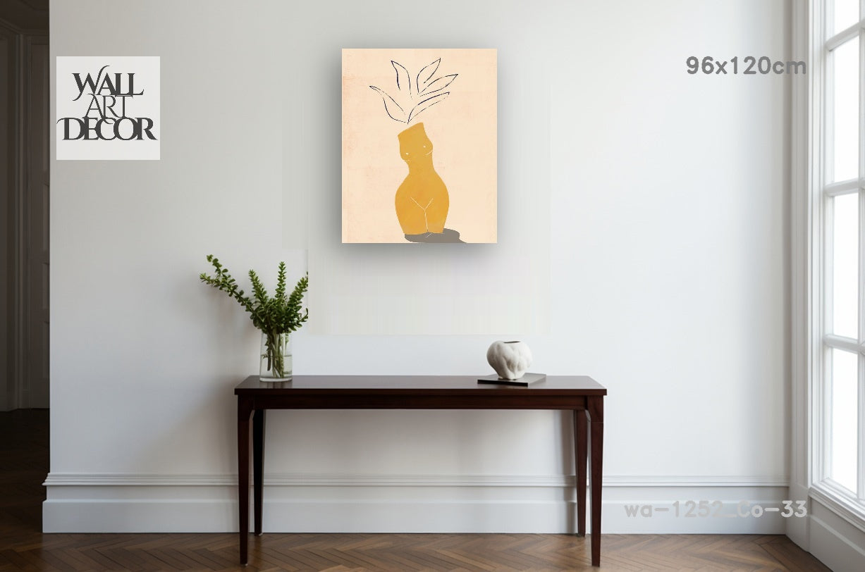 إلهة ذهبية: مزهرية أنثوية مجردة – لوحة جدارية عصرية بدون إطار