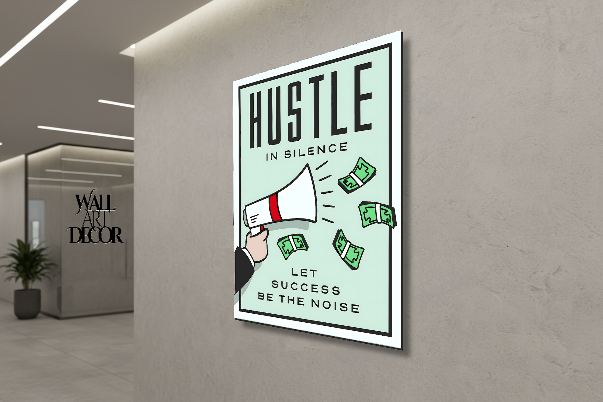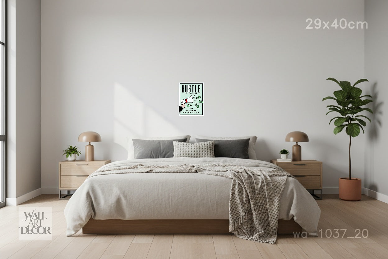 حوّل مساحة عملك إلى مركز إنتاجية مزدهر مع لوحة "اعمل بصمت". مستوحاة من جمالية لعبة الطاولة الكلاسيكية الخالدة، تتميز هذه اللوحة التحفيزية البسيطة بمكبر صوت أنيق يعرض أكوامًا من النقود على خلفية خضراء فاتحة نقية. الرسالة القوية "اعمل بصمت، دع النجاح يتحدث عنك" بمثابة تذكير يومي بالتركيز على أهدافك ودع نتائجك تتحدث عن نفسها.