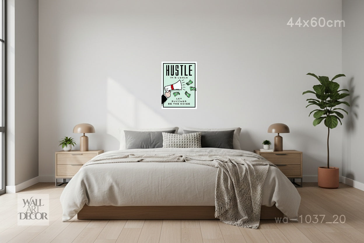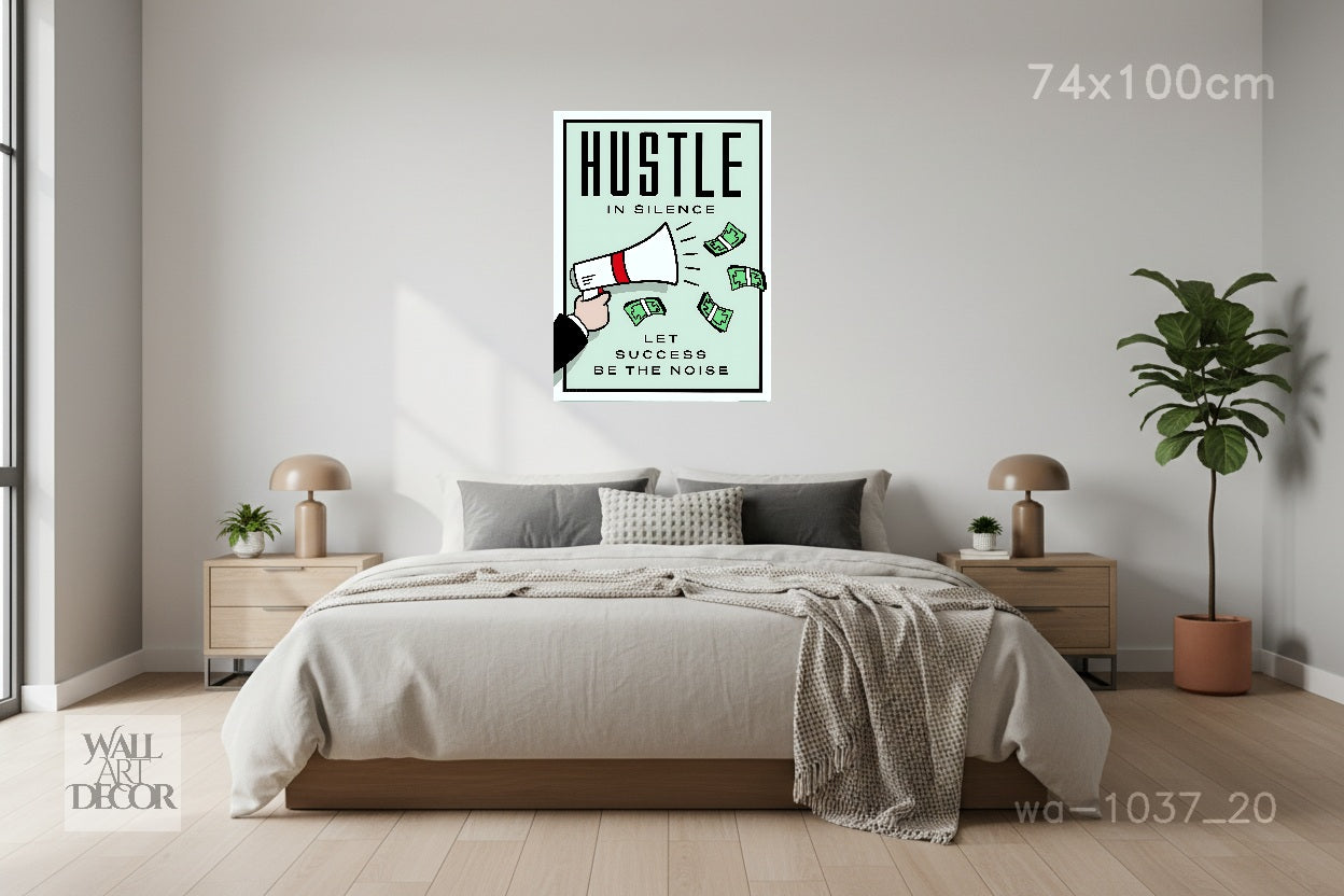 العمل الجاد في صمت: فن تحفيزي مستوحى من لعبة مونوبولي - لوحة جدارية حديثة بدون إطار