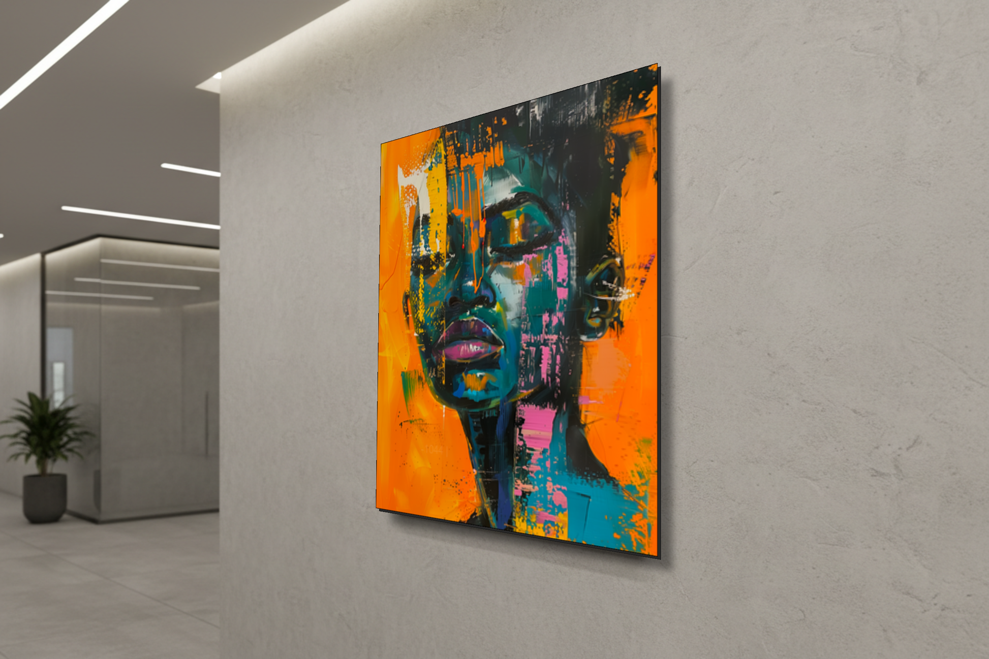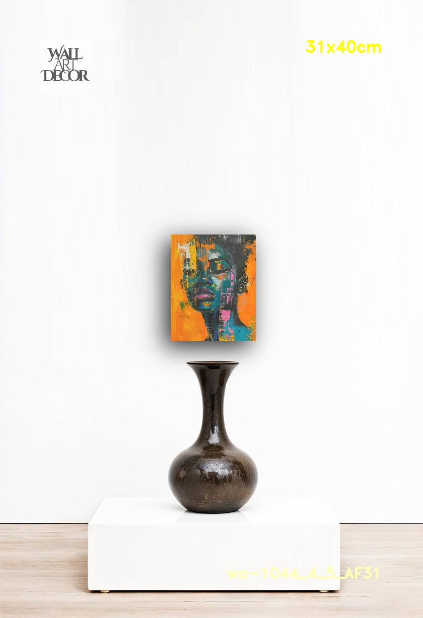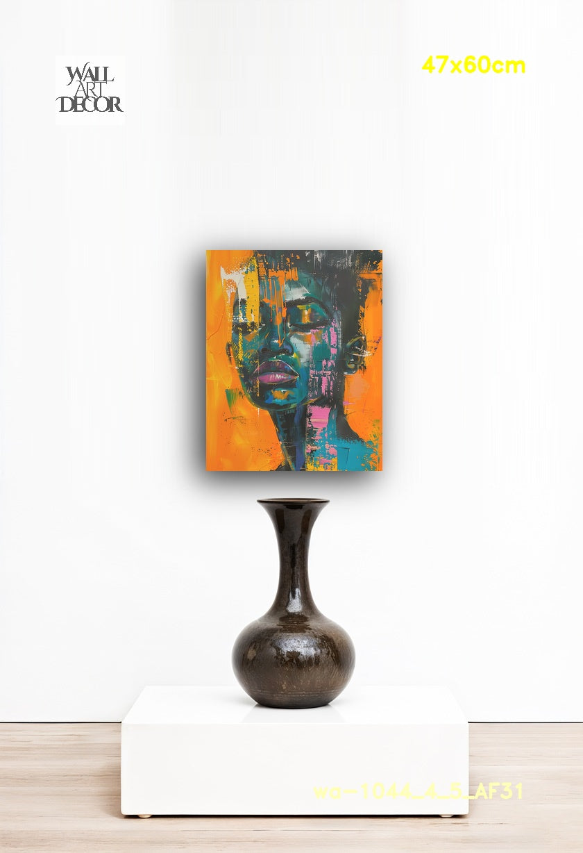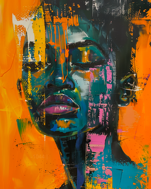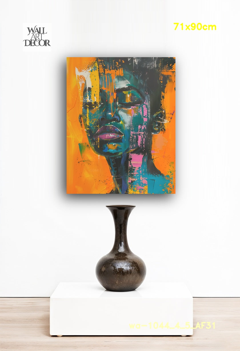أضف إلى مساحتك طاقةً نابضةً بالحياة وجريئةً مع لوحة "أحلام النيون". تتميز هذه اللوحة الحضرية الآسرة بملامح وجه عالية التباين، مرسومة بألوان زرقاء مخضرة داكنة وأرجوانية غنية، على خلفية برتقالية وصفراء زاهية. تستخدم اللوحة ببراعة تأثيرات الطلاء المتساقط، والبقع، ولمسات الفرشاة الجريئة والمعبرة لخلق إحساس ديناميكي بالحركة وطابع الشارع. أما تعبيرها الهادئ، وعيناها مغمضتان في لحظة تأمل عميق، فيضفي توازناً راقياً على الألوان الصاخبة والنابضة بالحياة.