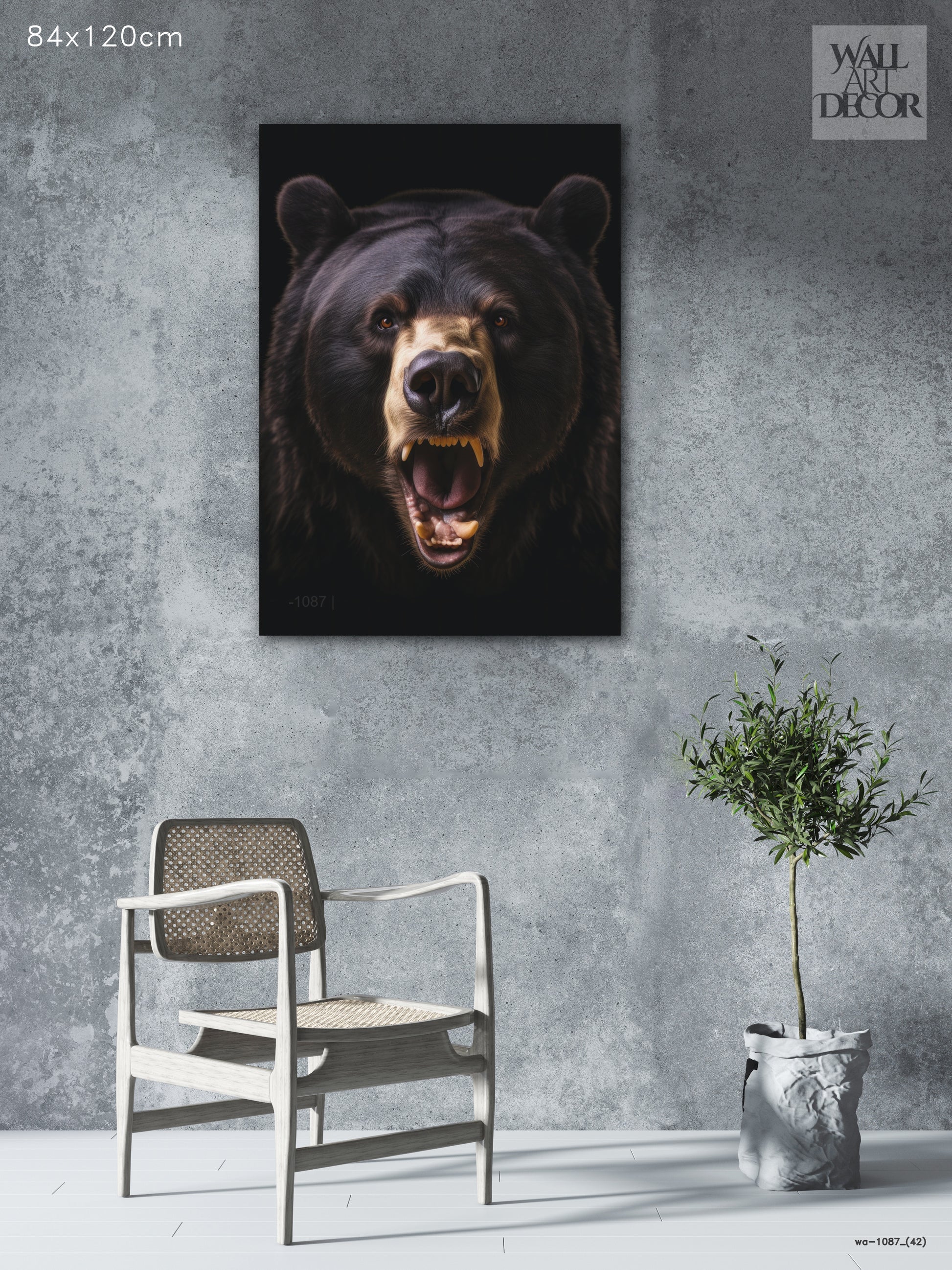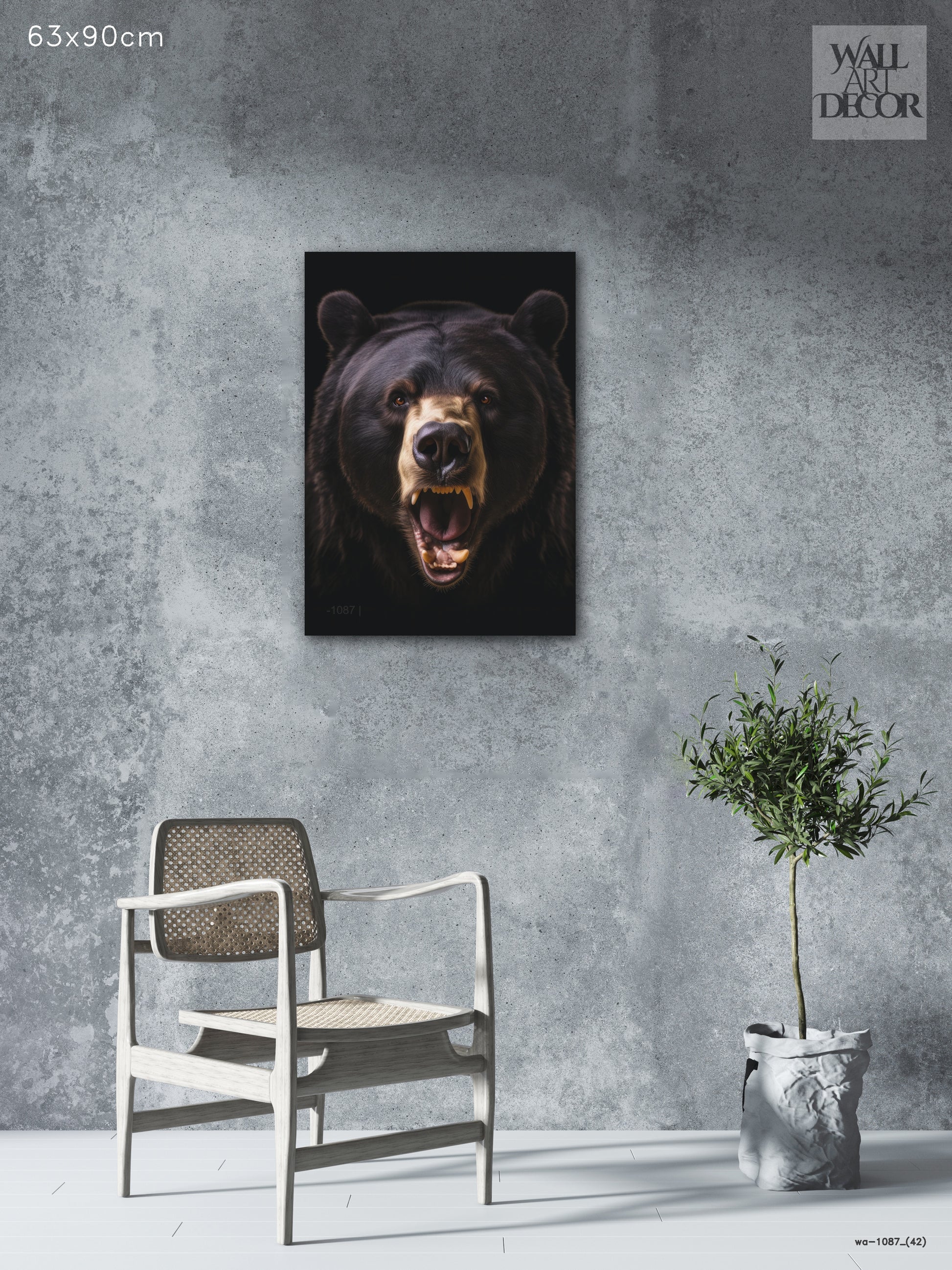 زئير بدائي: دب رمادي مهيب – لوحة جدارية عصرية بدون إطار