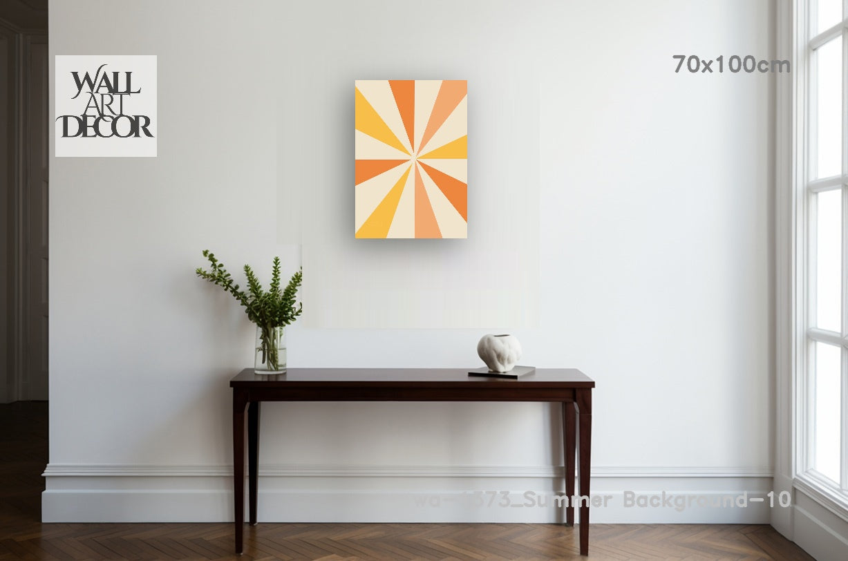 استمتع بتجربة التوازن المثالي بين البساطة العصرية واللمسة الكلاسيكية مع لوحة "شروق الشمس المنشوري". يتميز هذا العمل الفني الجرافيكي المذهل بنقطة مركزية تشبه الشمس، تنبعث منها أشعة هندسية حادة بنمط نجمي متناغم. تتناغم الألوان الدافئة من البرتقالي المشمس والأصفر الذهبي والخوخي الناعم على خلفية كريمية نقية، لتخلق تناغمًا بصريًا يشع طاقةً وبنيةً. تقدم الخطوط الدقيقة والحادة رؤية معمارية راقية للزخارف السماوية التقليدية.