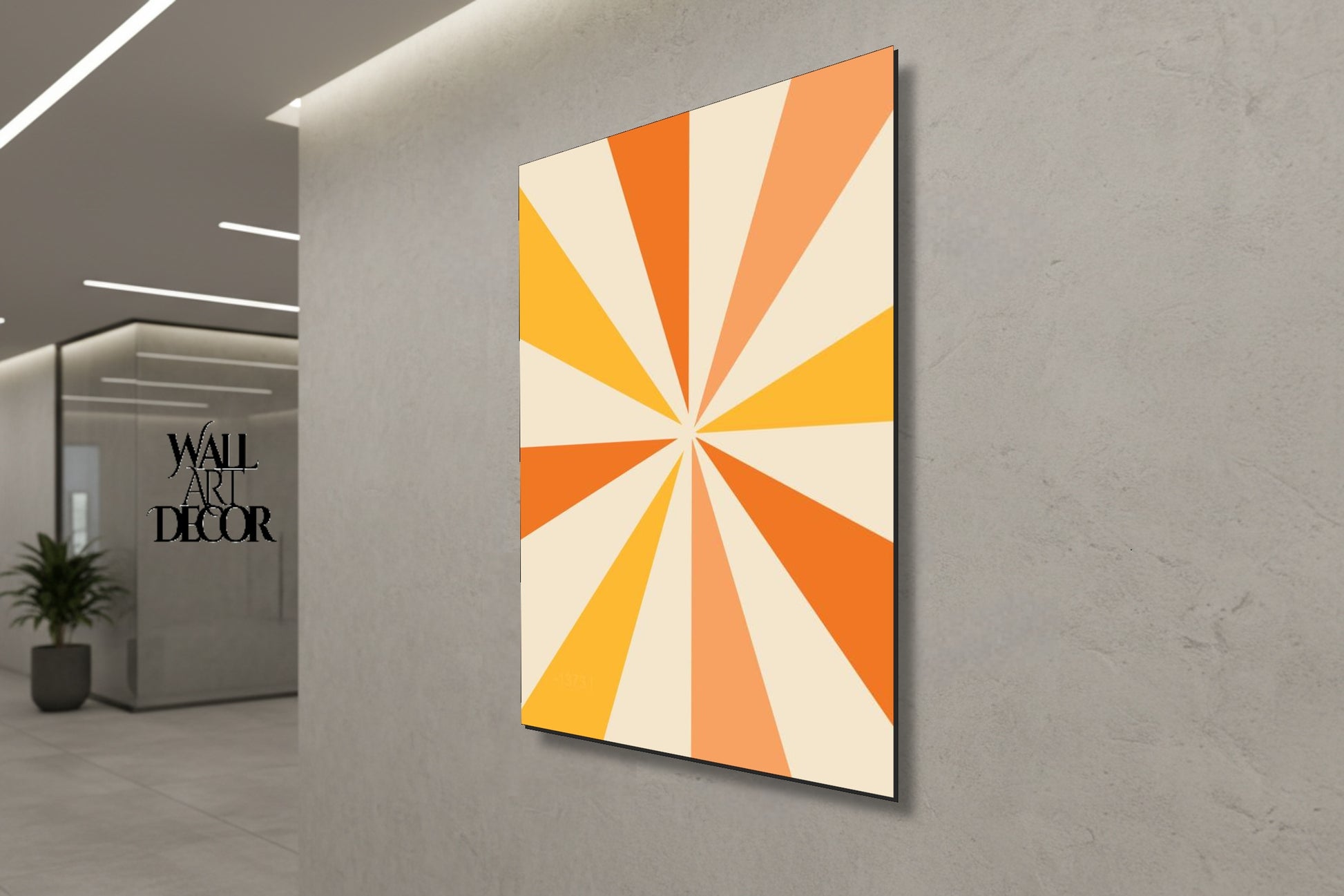 • الأكريليك عالي اللمعان : يعزز الخطوط الهندسية عالية التباين؛ السطح الشبيه بالزجاج يجعل درجات البرتقالي والأصفر الدافئة تبرز بوضوح ولمعان احترافيين.