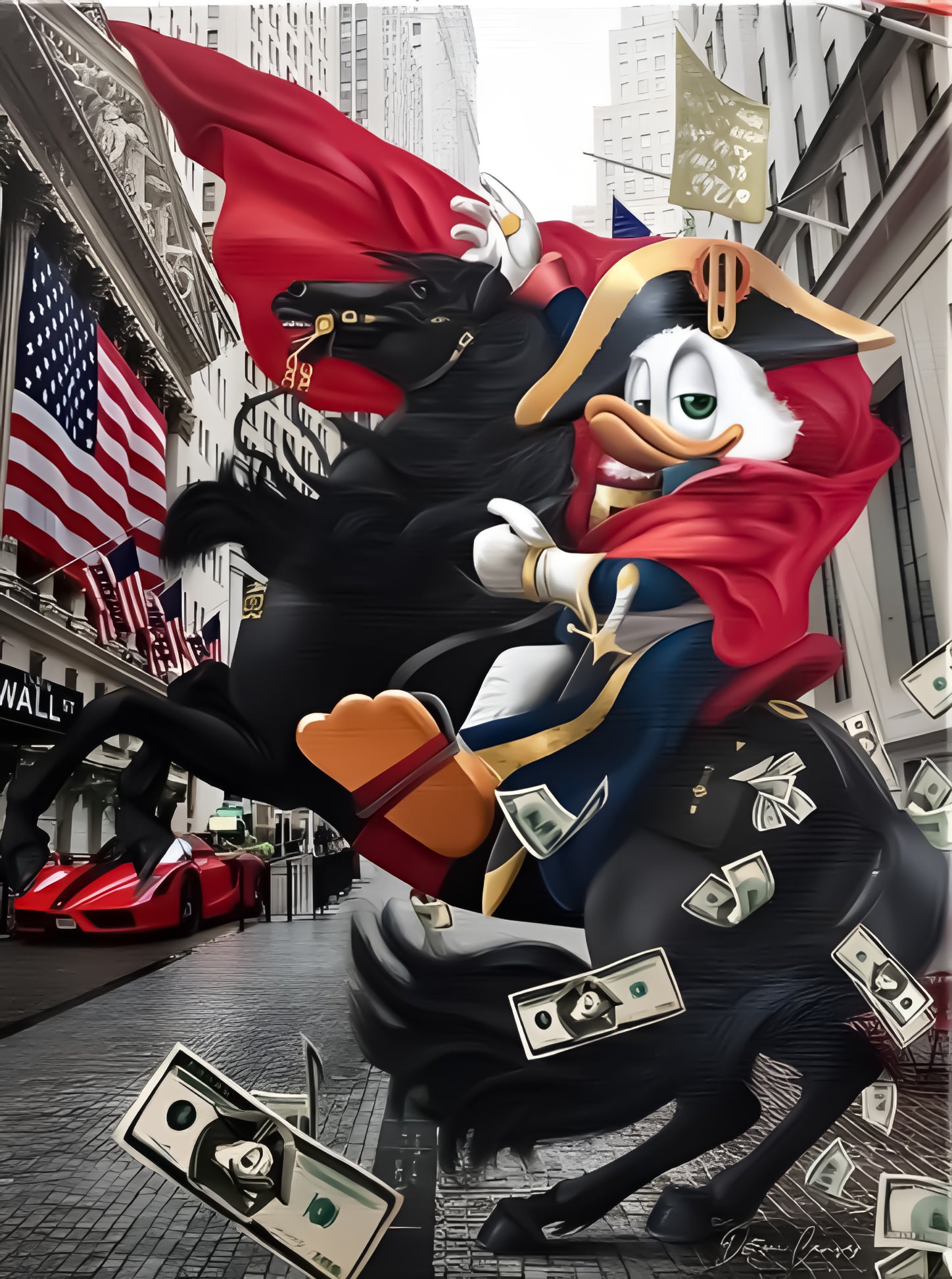Donald Duck on Horseback with Money — Bold Pop Culture Sculpture
